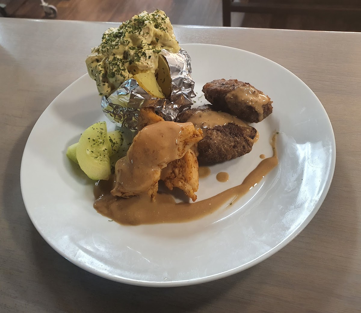 For those who prefer something beyond pizza, Pizzeria Linden also serves a mouthwatering Fläskfilé Med Klyftpotatis Och Bea-tender pork fillet served with crispy potato wedges and a rich Béarnaise sauce. The flavors are perfectly balanced, making it a must-try for meat lovers. Another popular option is the Bakad Potatis Med Kycklingröra, a baked potato loaded with a creamy chicken salad topping. This dish is a perfect choice for those seeking something filling yet light.